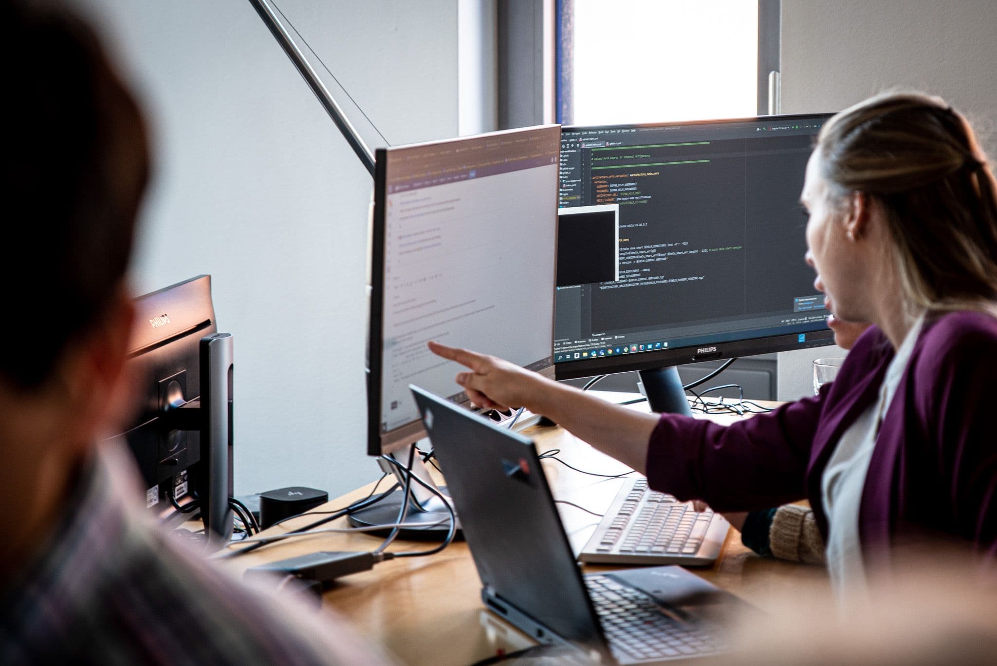 Unsere Entwickler:innen arbeiten in crossfunktionalen Teams und setzen ambitionierte IT-Visionen in die Praxis um. Mit modernem TechStack entstehen individuelle, cloud-native Lösungen, die Prozesse optimieren, Effizienz steigern und neue Geschäftsfelder erschließen. Immer im Zentrum: die Bedürfnisse der Unternehmen und die bestmögliche User Experience für ihre Kundschaft.