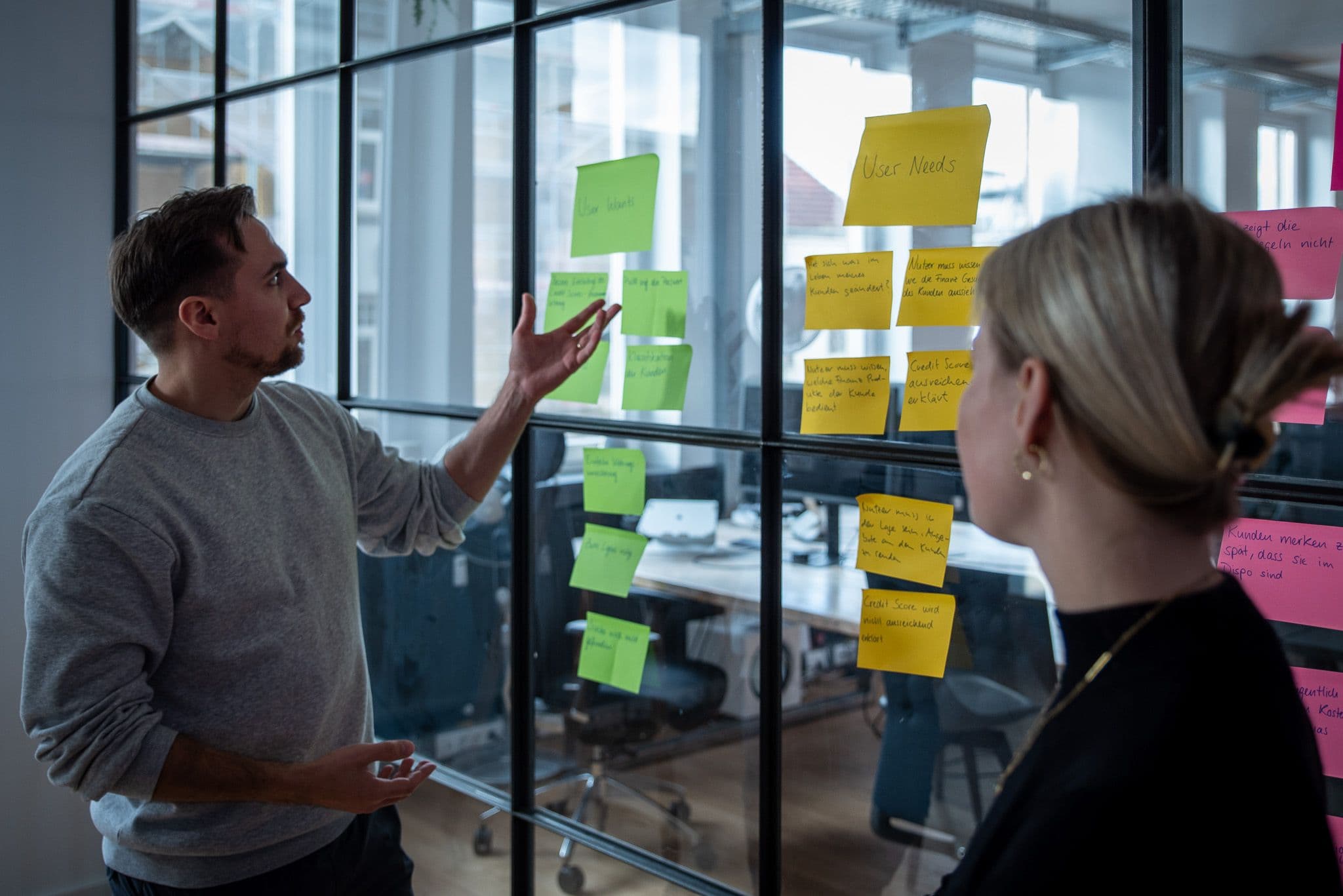 Immer die Nutzenden im Fokus bei Neu- wie Weiterentwicklungen. Wir entwickeln gemeinsam zukunftsweisende Geschäftsideen, Produkte und Services. Grundlage sind fundierte Marktanalysen, User Research und tragfähige Business-Konzepte. Dafür bündeln wir Expertise aus Business Design, Research, UX Design und Innovation. So entstehen digitale Lösungen, die echten Mehrwert schaffen und nachhaltig wirken.