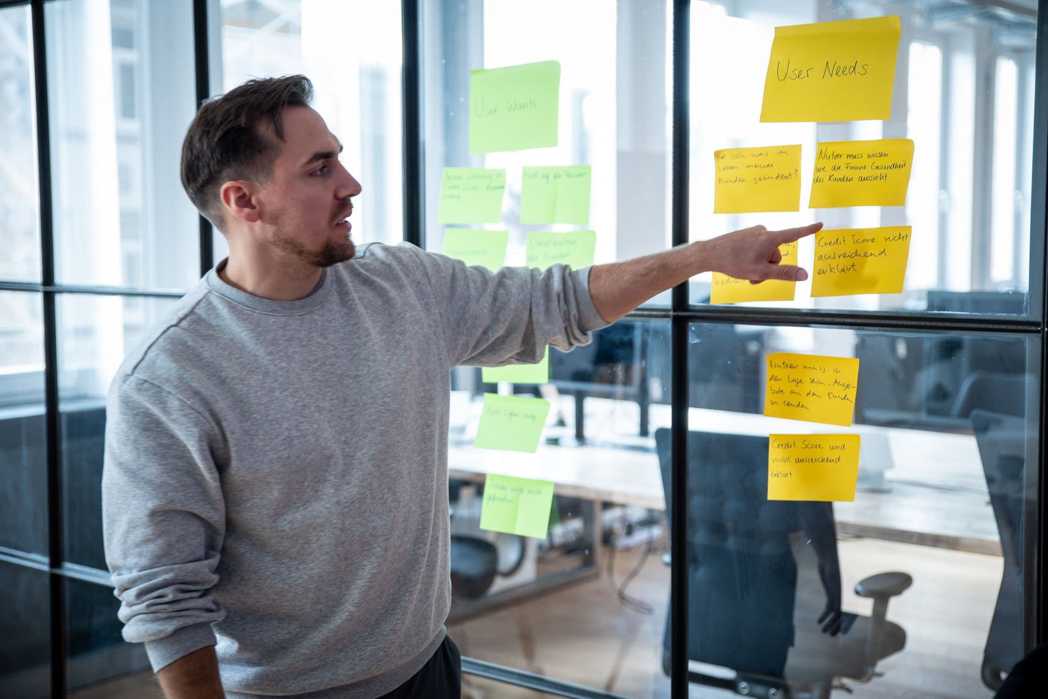 Immer die Nutzenden im Fokus bei Neu- wie Weiterentwicklungen. Wir entwickeln gemeinsam zukunftsweisende Geschäftsideen, Produkte und Services. Grundlage sind fundierte Marktanalysen, User Research und tragfähige Business-Konzepte. Dafür bündeln wir Expertise aus Business Design, Research, UX Design und Innovation. So entstehen digitale Lösungen, die echten Mehrwert schaffen und nachhaltig wirken.