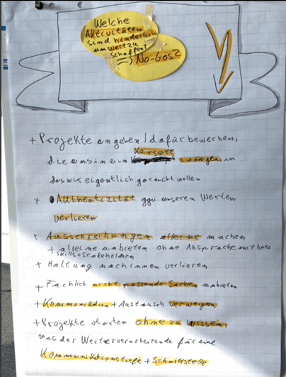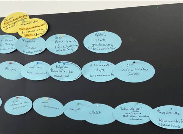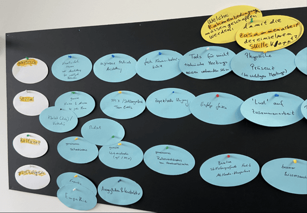 Die Veranstaltung ermöglichte einen sehr persönlichen, offenen Austausch sowie eine gemeinsame Gestaltung zum Ist- und Sollzustand der Zusammenarbeit zwischen den Skills und bildete zugleich interessante Impulse ab. Während des Workshops konnten daher verständliche Tafelbilder erstellt und konkrete nächste Schritte abgeleitet werden.