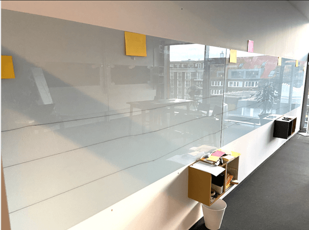 Aufteilung des Whiteboards in mehrere Zeilen (einige Zeilen waren im Workshopverlauf zusätzlich entstanden):