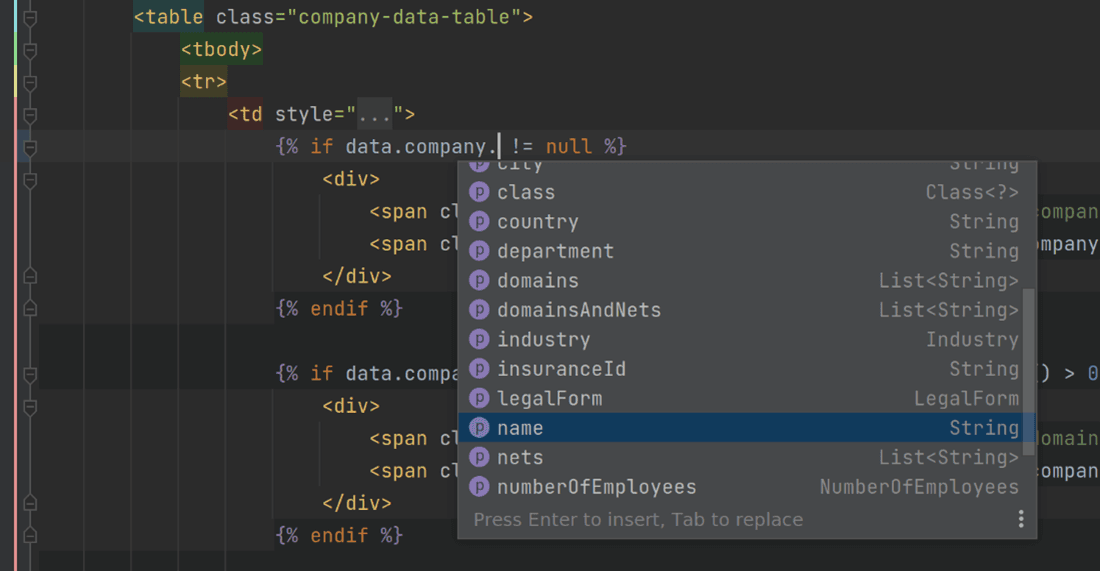 Die Templates lassen sich in Echtzeit bearbeiten und können mit modernen IDEs (wir nutzen IntelliJ) problemlos dargestellt werden.