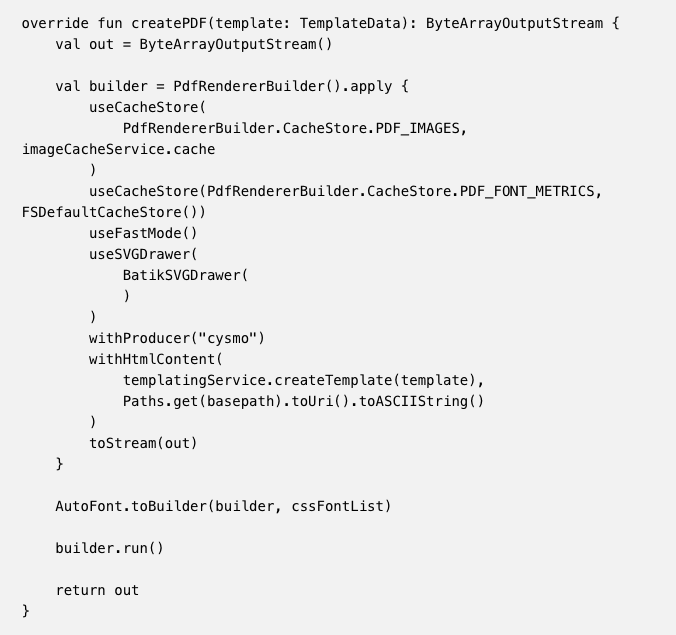 Codebeispiel: Kotlin-Methode, um PDF zu generieren.
