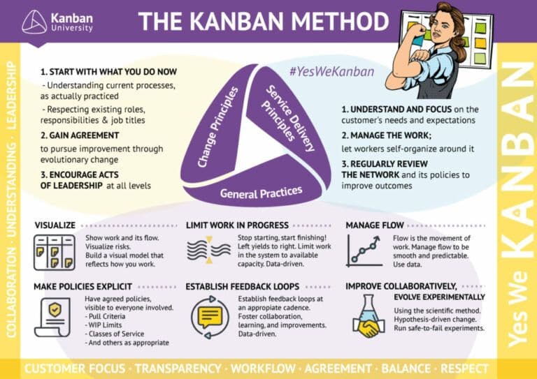 Weitere Informationen zu den drei Change-Prinzipien, den drei Prinzipien zur Service-Erbringung und den sechs Praktiken finden Sie in dem großartigen Artikel von David J. Anderson selbst: https://djaa.com/revisiting-the-principles-and-general-practices-of-the-kanban-method/