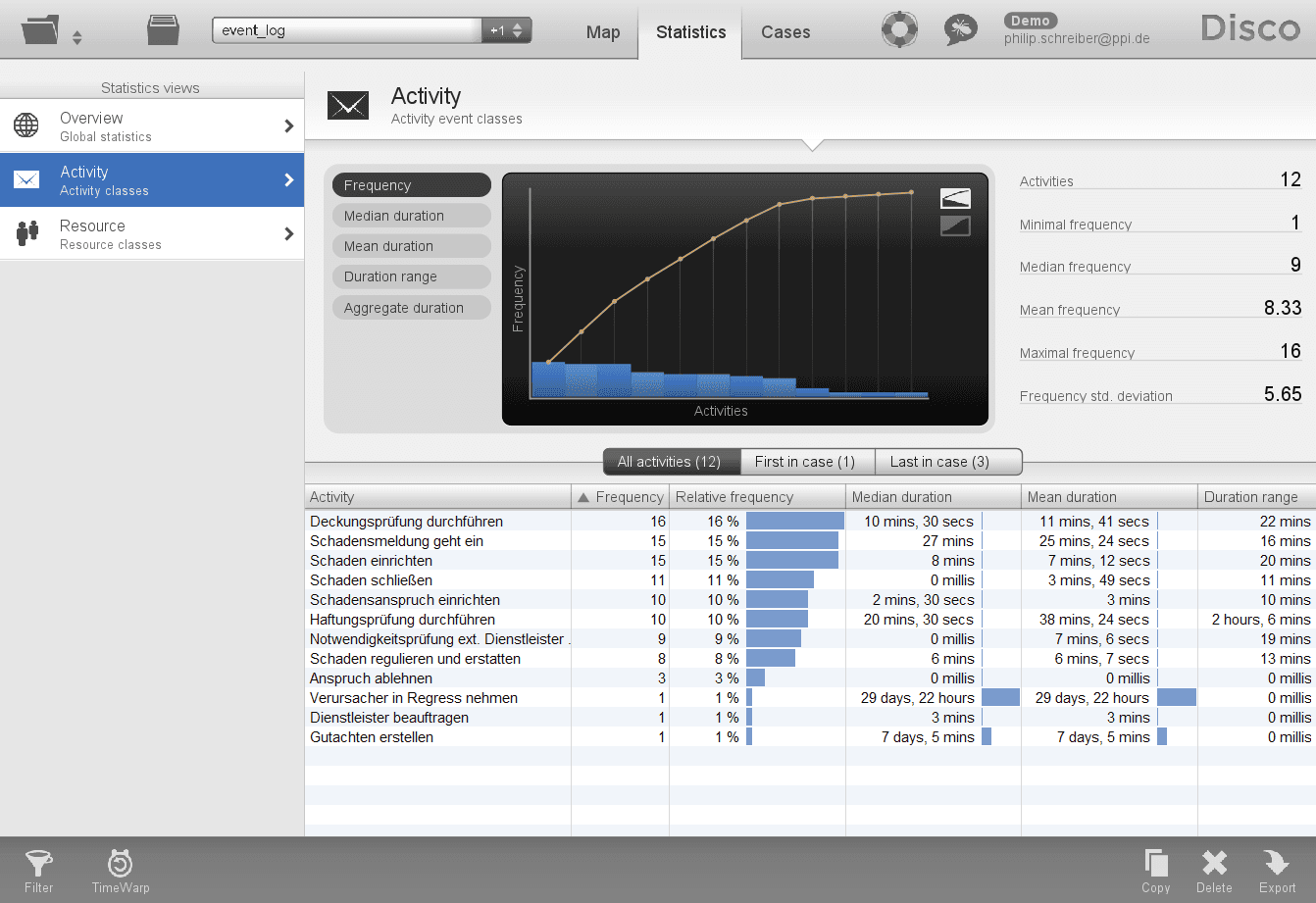 Abbildung 2 Prozesskennzahlen Darstellung in einem Process Mining Tool